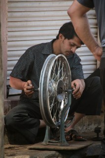 | The desi way of repairing a tyre rim |