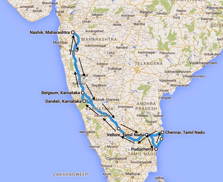The ride would start in the state of Maharashtra and take us through the states of Karnataka, Tamil Nadu and the Union Territory of Pondicherry. We would be visiting World Heritage sites such as the Sea Shore temple in Mahabalipuram, experiencing the French lifestyle and food in the laid back town of Pondicherry as well as performing daredevil adventure activities and seeing some wildlife in Dandeli.