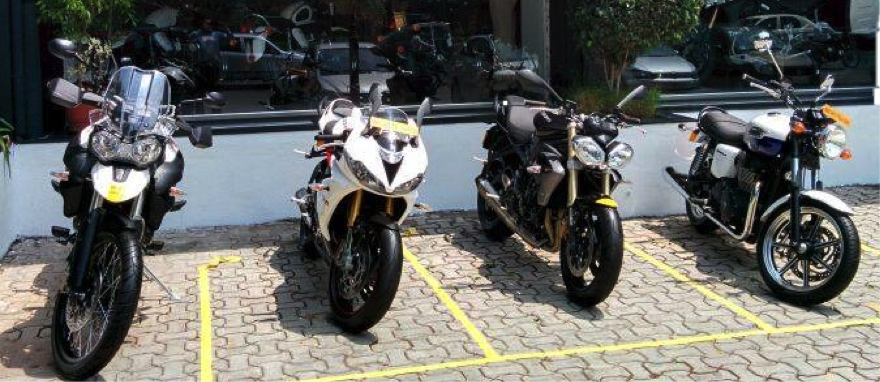 What intrigued me initially was the line-up of Triumph bikes being sold in India. The Striple twins (Street and Speed Triple) having the 3 cylinder engines, the Rocket III having a massive 2300cc engine, the classic Bonnivelle and Thruxton Café Racer, the sporty track bike Daytona 675 and the off-road specialist Tiger covered every type of riding genre.