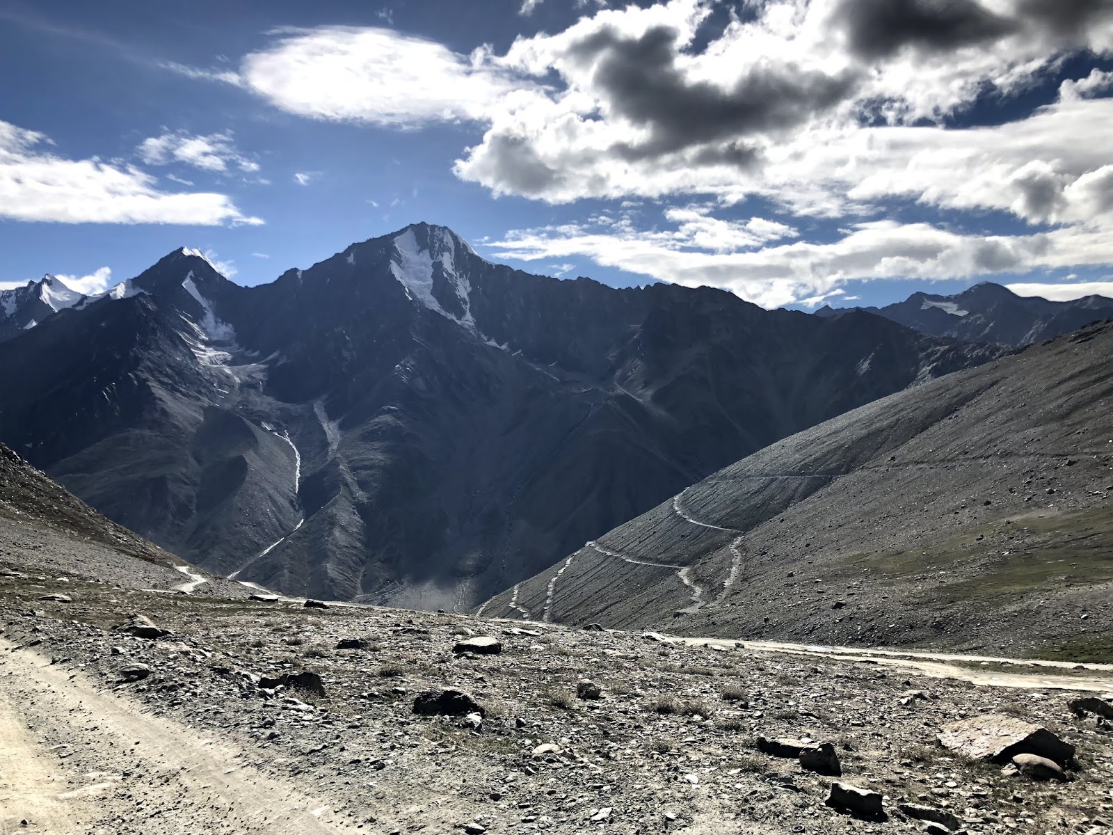 We started our accent on a severe hill, where the road was completely washed out and there was dried mud everywhere. It had been a large mudslide a couple of day back, and we were lucky to be coming a few days later. Finally, we took a turn and the Malani-Leh highway lay before ahead. It was the first time we were seeing tarmac in quite a days.