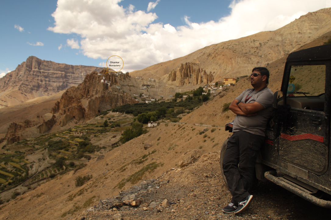 We reached Dhankar monastery and to our surprise we found that the road leading up the mountain was completely washed away. We found an alternate “kaccha” rasta and went ahead.